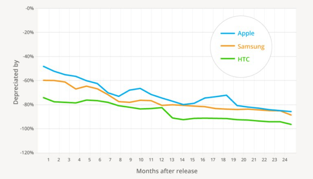 While a car in the U.S. typically loses 19% of its value in the first year after being driven off the lot, smartphones can lose up to 65% of their value after just a month of being released.