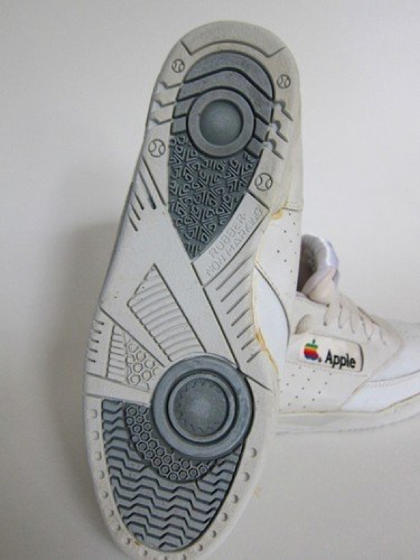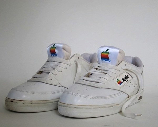 No, Apple isn’t entering the shoe business (at least as far as I know), but the company did make a pair of kicks in the 1990s. Apparently only one pair of the sneakers were ever produced. I think some Apple branded shoes would be cool as part of an “iWear” line.