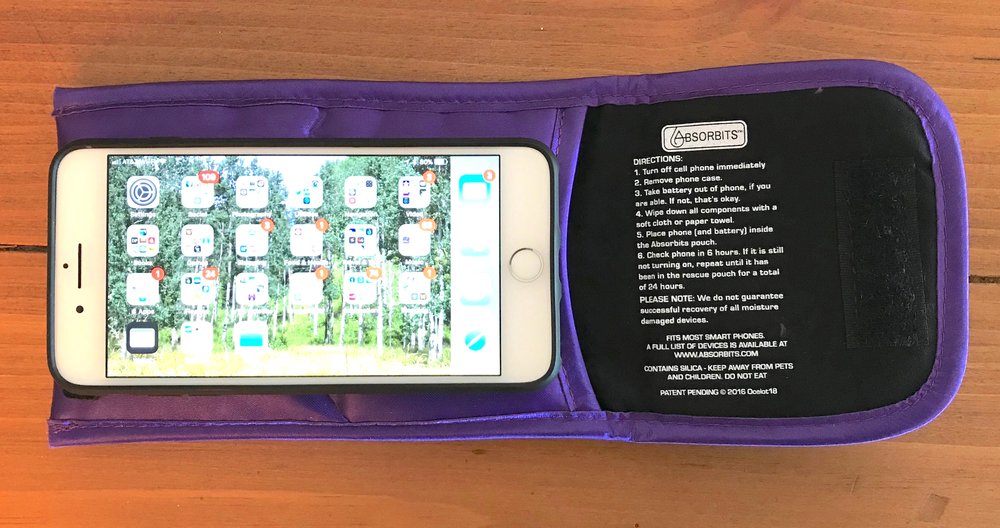 iPhones have only had decent water resistance in the past few years, and before then the recommended practice for trying to save phones that had taken a plunge was to use rice… Yes, putting the iPhone into a baggie full of rice was supposed to help soak up the water and dry out the phone, and it worked…sometimes. A better idea is to use silica gel, the stuff that usually comes in small packets put in boxes and pill bottles to keep water from damaging sensitive materials. Absorbits ($9.99, Amazon Associates link) is a pouch/carrying case for the iPhone and any other small personal electronics that has “padding” that’s actually silica gel made to soak up water in emergencies.