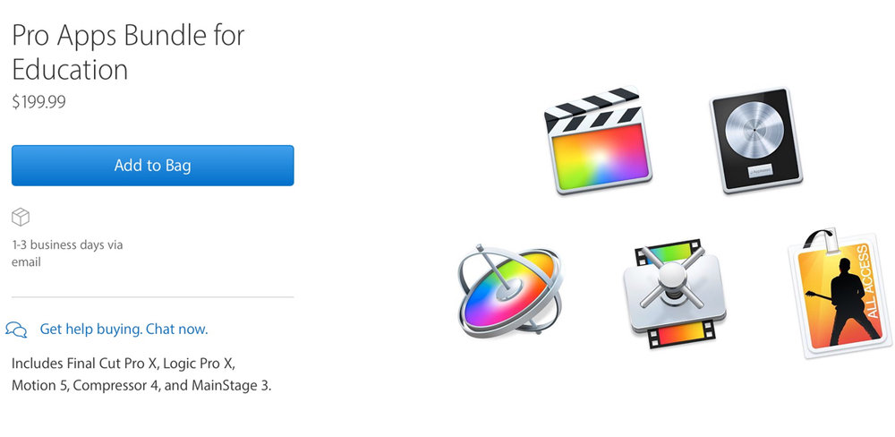 Apple has introduced a $199 Pro Apps Bundle for educators and students that includes versions of Final Cut Pro X, Logic Pro X, Motion 5, Compressor 4, and MainStage 3, downloadable at the Mac App Store.