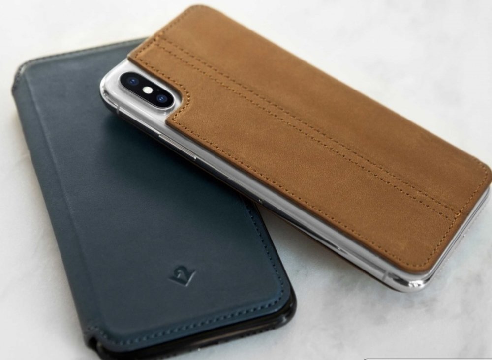 The SurfacePad for iPhone X has automatic wake/sleep functionality when opening or closing the front flap. It has a full-grain leather design and is available in black, cognac and deep teal flavors.