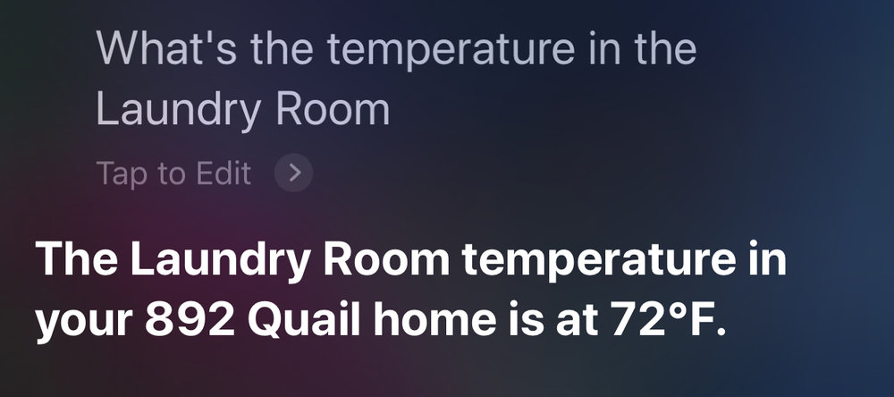 But that’s not all the Flood Sensor does. I can also ask Siri for the temperature in that room: