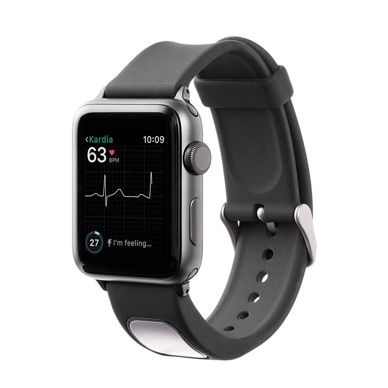 In November 2017, AliveCor announced FDA clearance of its US$199 KardiaBand (pictured above) in the U.S. It allows Apple Watch users to capture their EKG anytime, anywhere in order to quickly detect normal sinus heart rhythms and atrial fibrillation (AFib), the most common heart arrhythmia.
