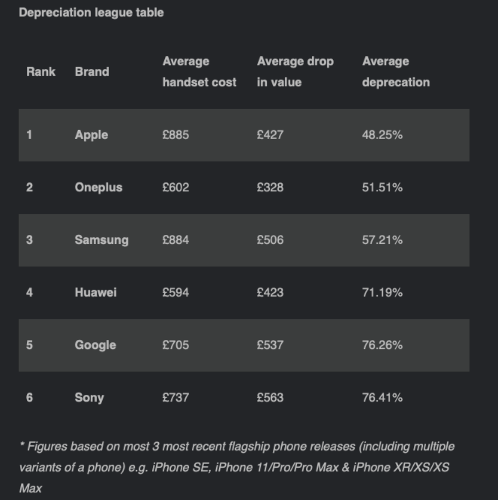 Of the brands studied, Apple came out on top for value retention, with iPhones retaining 52% of their value on average over three years. In comparison, Sony owners could expect to lose more three quarters (76%) of their handset value, with its recent Xperia 1 II, having already lost approximately $826 (69%) of its $1,200 price tag in just two months.